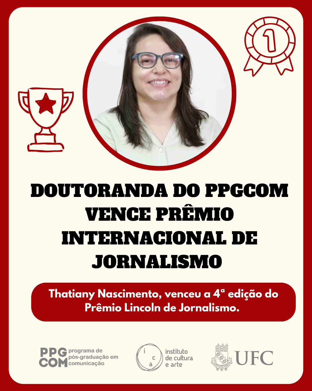 🎓 O PPGCom/UFC parabeniza Thatiany Nascimento por essa conquista e reconhece a importância do seu trabalho e da sua pesquisa para o fortalecimento da comunicação pública, do jornalismo investigativo e da produção científica comprometida com a democracia e a transparência.